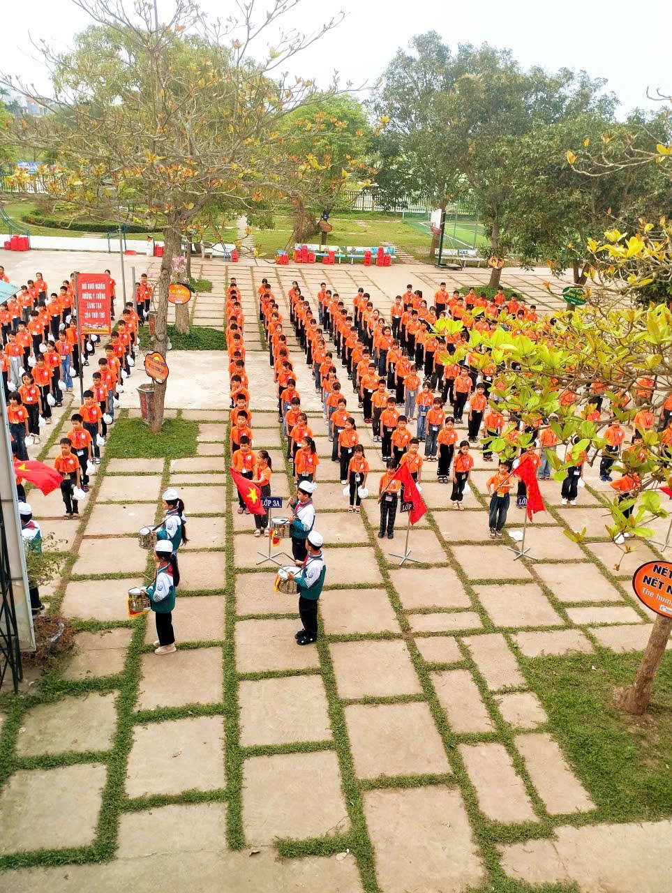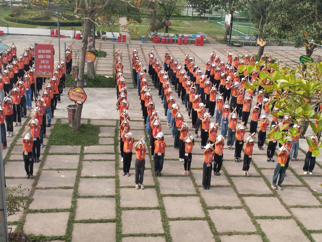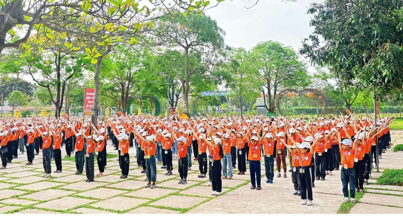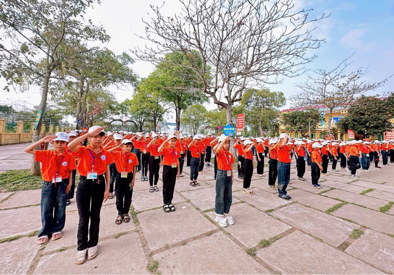 Ngày hội được tổ chức trong không khí trang nghiêm nhưng cũng rất vui tươi, sôi nổi. Mở đầu chương trình, các em học sinh tham gia nghi thức sinh hoạt dưới cờ với đầy đủ các nghi lễ quen thuộc, thể hiện tinh thần nghiêm túc, lòng tự hào và ý thức trách nhiệm của mỗi đội viên, nhi đồng đối với Tổ quốc và mái trường. Tiếp đó là màn đồng diễn tập thể với bài hát “Hát vang trong kỷ nguyên mới”, tạo nên bầu không khí hào hứng, rộn ràng trên sân trường. Những động tác khỏe khoắn, nhịp nhàng cùng giai điệu tươi vui đã thể hiện tinh thần đoàn kết, sức trẻ và niềm tin của thiếu nhi vào tương lai tươi sáng của đất nước.